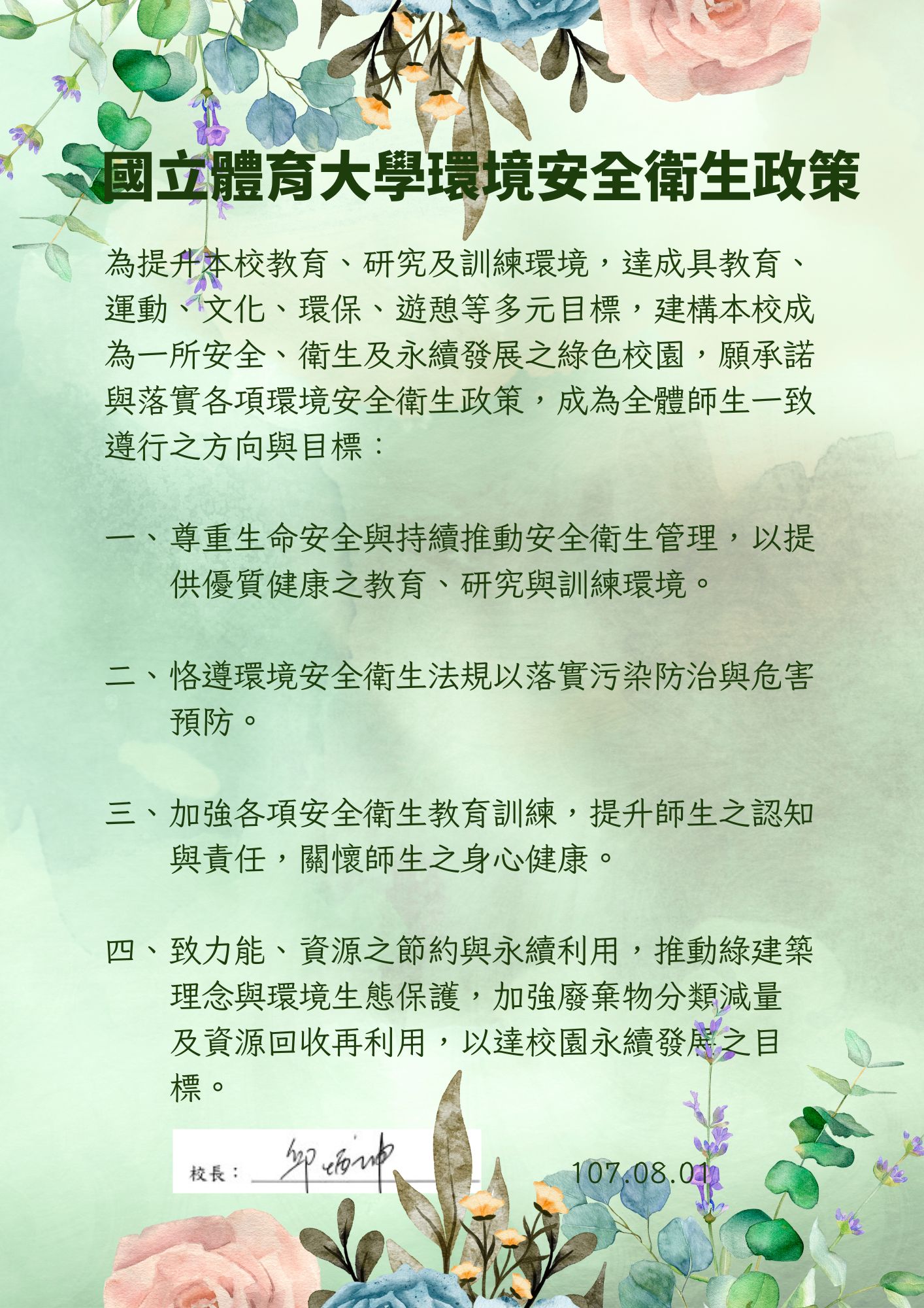 國立體育大學環境安全衛生政策